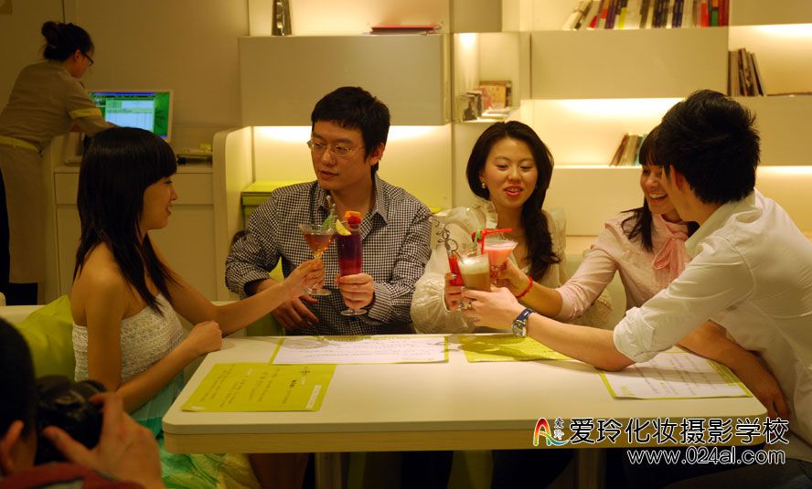 《高端品牌餐厅》广告拍摄活动,由爱玲化妆学校担任此次的化妆造型工作。学员们在拍摄现场为演员们化妆,学员们按照自己对电影的拍摄理念和整个环境需要烘托氛围的理解,给演员们量身设计造型。学校也想在实践中,培养学员自己对化妆这门艺术的理解独立完成作品的能力。在广告的拍摄间隙,学员们为自己的作品拍照留念。