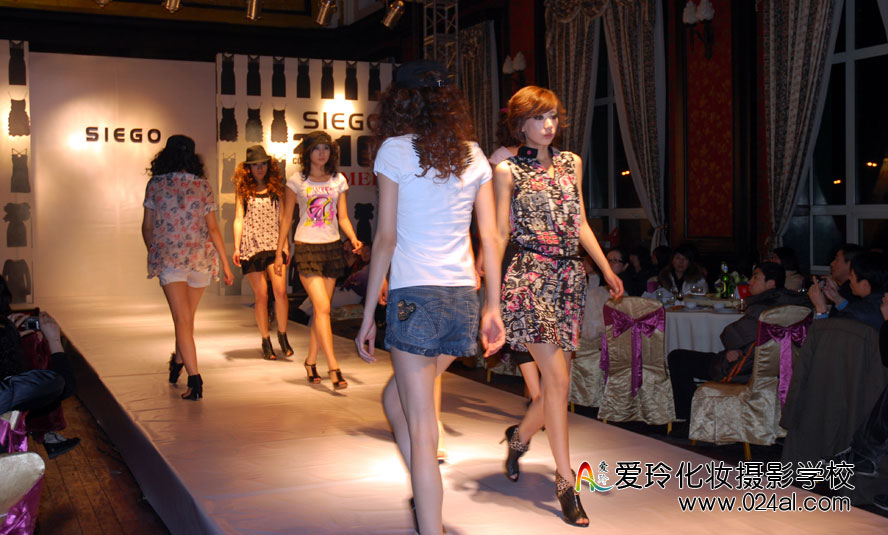 SIEGO品牌夏季时装周秀展,爱玲化妆学校全程为模特化妆造型。作为时装秀活动,其化妆难度有了很大的提升,不但要考虑到妆容的美感,同时还要关注妆容造型与服饰的搭配,尤其作为学员,在这种多变、高要求的妆容装扮下,可以更加有效锻炼自己的化妆水平,而且有名师相随指导,可使自己的化妆技巧得到有效的提升。