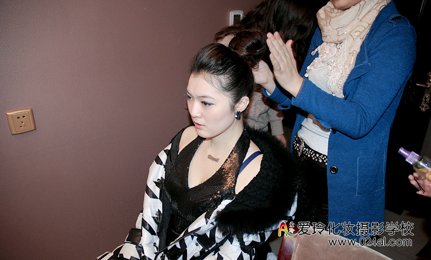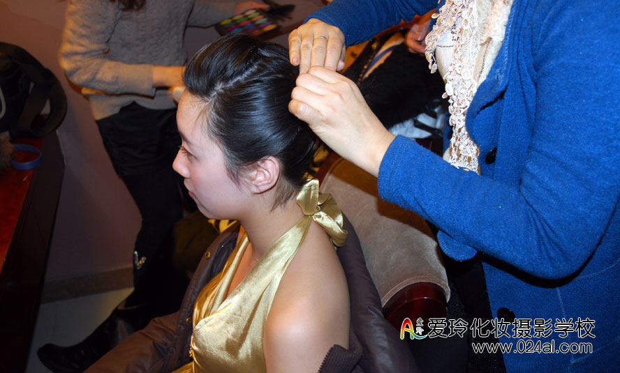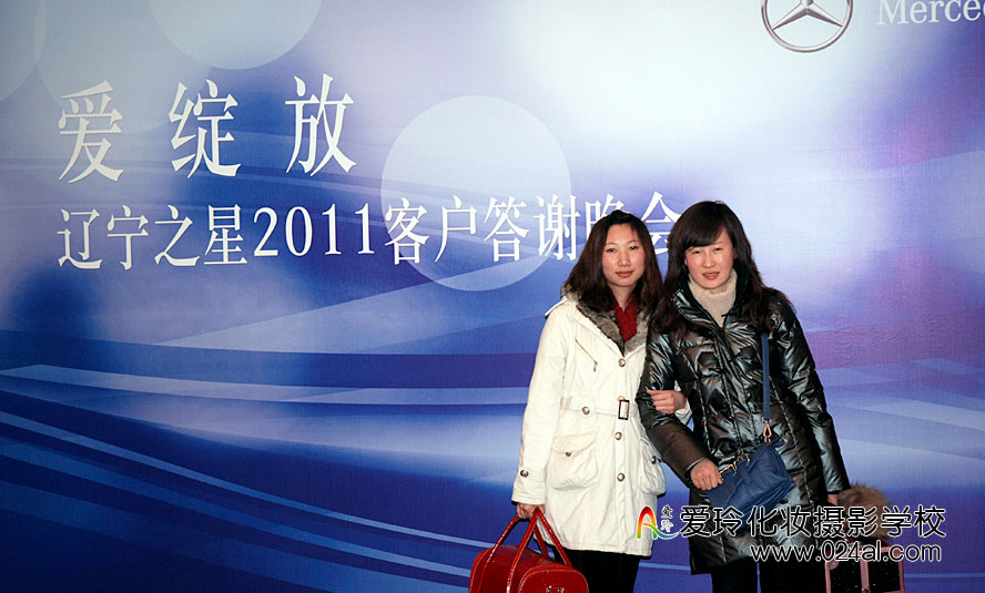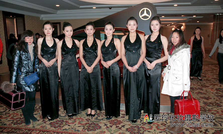 爱玲化妆学校参加奔驰客户答谢晚会活动,为车模们化妆造型。学员们正在后台为模特化妆,他们已经能够独立对模特进行从头到脚的包装,从发型到妆面,都做得恰到好处。学员们的化妆造型得到嘉宾及主办方的好评。从他们的身上,看到形象设计师从入门到熟练的成长过程,相信这些星花初绽的学员们只要坚持自己的梦想、努力学习创新,定会在此行业成就